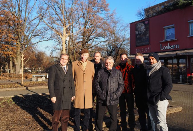 Der Troppauplatz ist das „Zentrum des (Bamberger) Ostens“, wie Dr. Ernst Trebin vom SPD-Ortsverein Bamberg-Ost (2.v.l.) sich augenzwinkernd gegenüber dem Oberbürgermeister Andreas Starke (li. im Bild) ausdrückt. Der Ortsverein, aber auch der Bürgerverein Bamberg-Ost und die ansässigen Geschäftsleute hatten sich schon länger für Verschönerungen dort eingesetzt. Nun wurde der Platz durch eine Pflanzaktion aufgewertet.