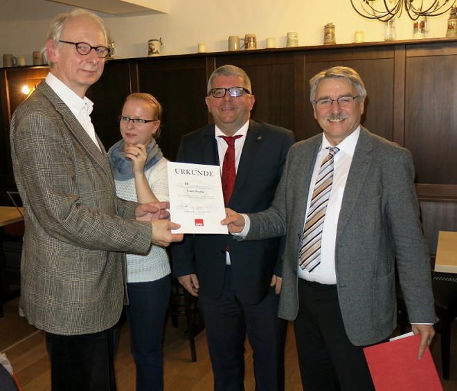 Einige Parteijubilare erfuhren Ehrungen für 10-, 25-, 40- und 50-jährige Parteizugehörigkeit, vorgenommen von unserem Distrikt-Stadtrat Heinz Kuntke und unserem 3. Bürgermeister Wolfgang Metzner. Ferner wurden einige Geburtstags-Gratulationen des abgelaufenen Jahres nachgeholt. Auch wurde der verstorbenen Mitglieder gedacht.
