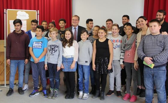 Schülerinnen und Schüler der 8. Klasse in der Heidelsteigschule diskutierten mit Oberbürgermeister Andreas Starke darüber, was in ihrer Schule und in ihrem Stadtteil, Bamberg-Ost, verbessert werden sollte. Außerdem gaben sie dem OB mit auf den Weg, was sie verändern würden, wenn sie einen Tag Oberbürgermeister von Bamberg wären. Der OB war „begeistert von dem Engagement der Schule, wirklich vorbildlich.“